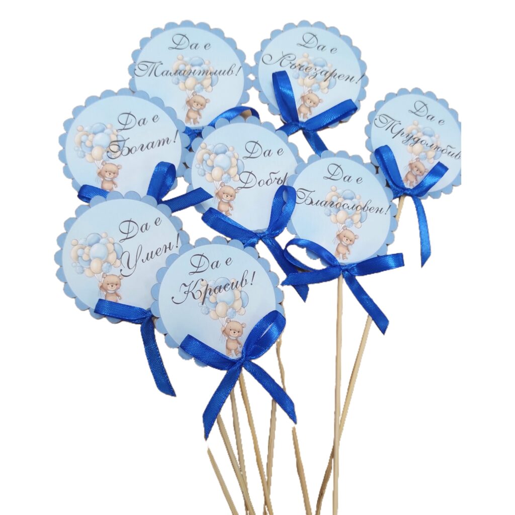 Тематични топери за орисване на бебето по време на тържеството по неговата погача. При изчерпана наличност може да се изработят по поръчка – цвят и тема.