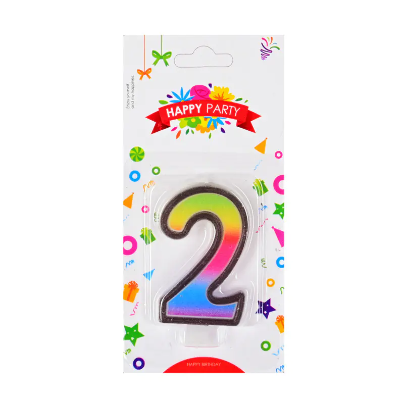 Свещ за рожден ден номер 2, шарена, размери 4 см ширина на 9 см височина