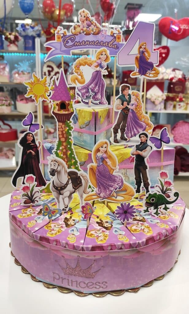 Картонена торта за рожден ден в детската градина на тема Рапунцел