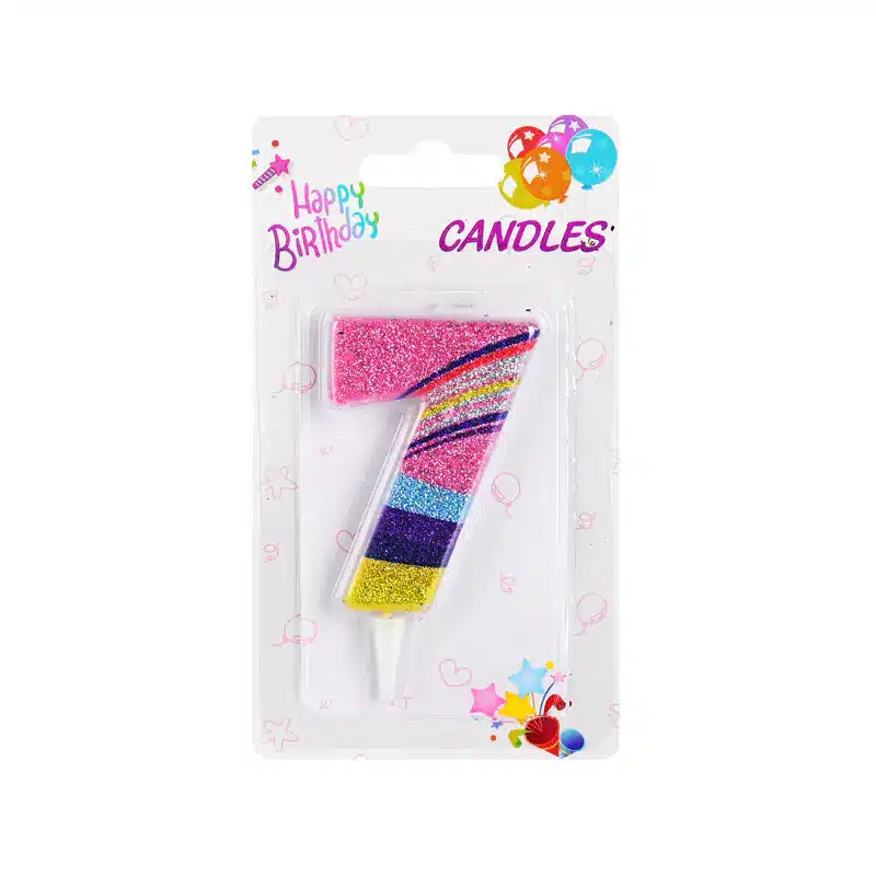 Свещ за рожден ден номер 7, шарена, размери 5 см ширина на 10 см височина
