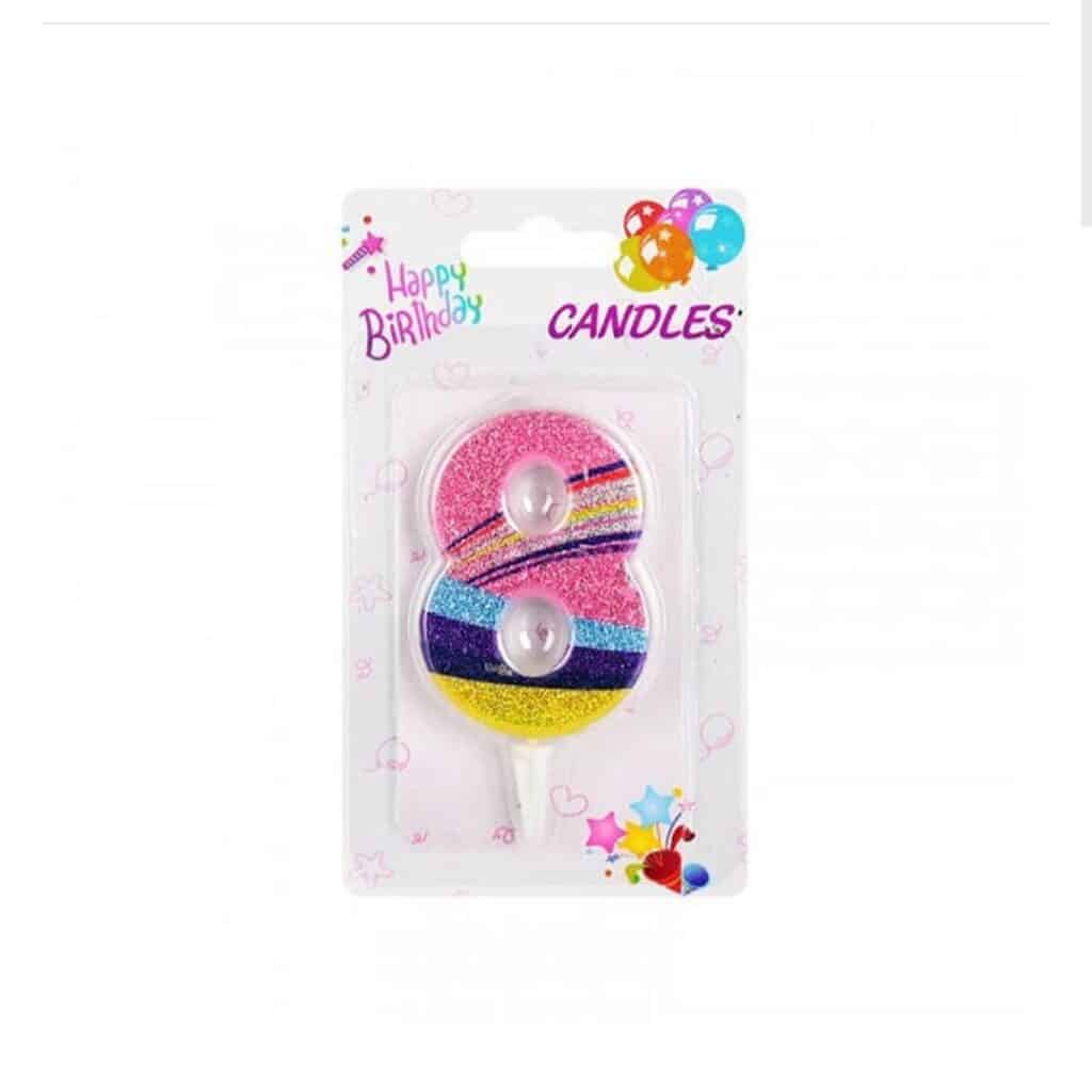 Свещичка шарена с брукат цифра 8