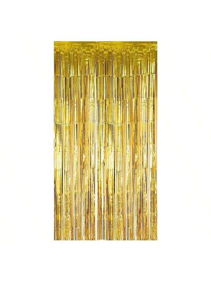 Декоративна завеса от лъскаво златно фолио. Добавяне на празнична атмосфера на събития като рождени дни, сватби или бебешки партита.