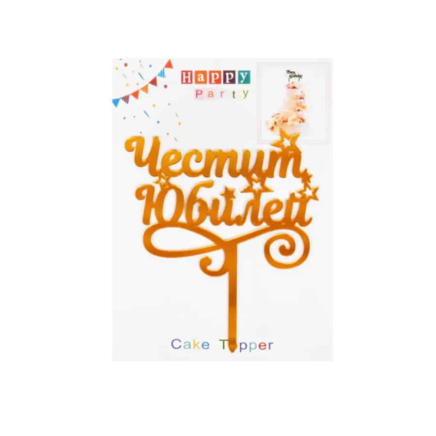 Топер от пластмаса, който се използва се за украса на торти по случай годишнина или юбилей. Размери 14 см на 12 см