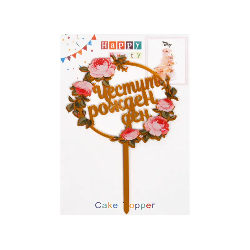 Топер от пластмаса, който се използва се за украса на торти по случай годишнина или юбилей. Размери 16 см на 10 см